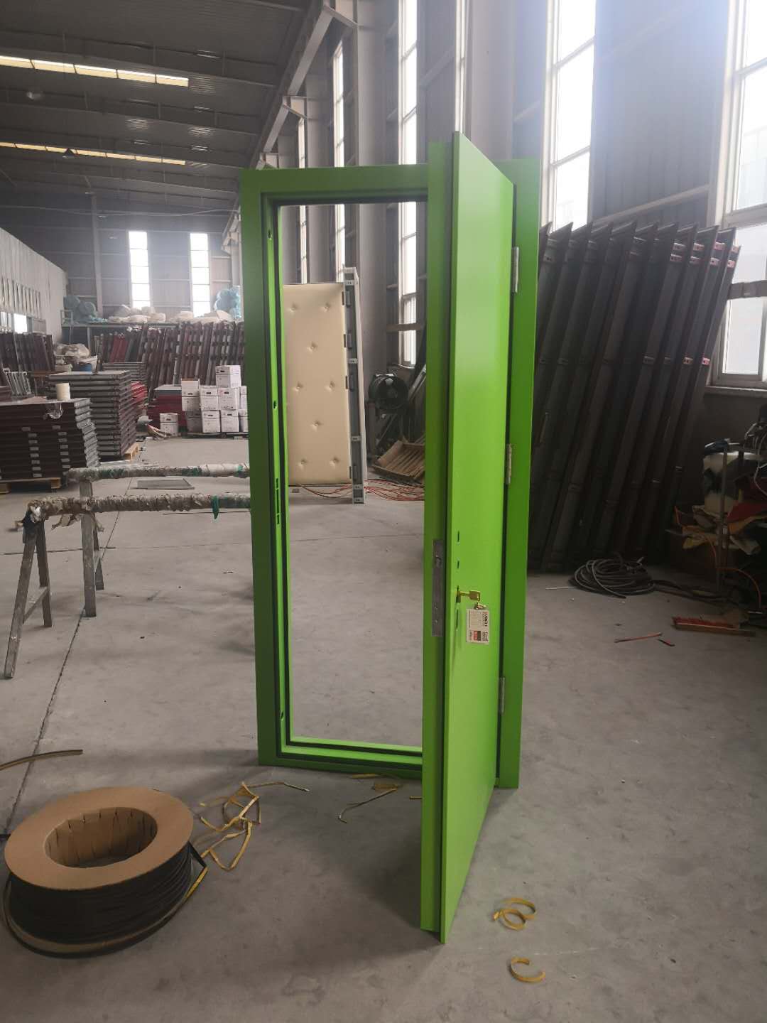 名称:防火隔音门   材质说明:   门框选用1.5mm钢板,门框厚度100mm   门扇选用1.0mm钢板,门扇厚度50mm   门扇内部填充防火珍珠岩板   锁具选用标配防火锁、合页   防火隔音门选装大拉手、逃生推杠锁   防火隔音门选用防火胶条及密封隔音条   门框门扇颜色为粉末静电喷涂