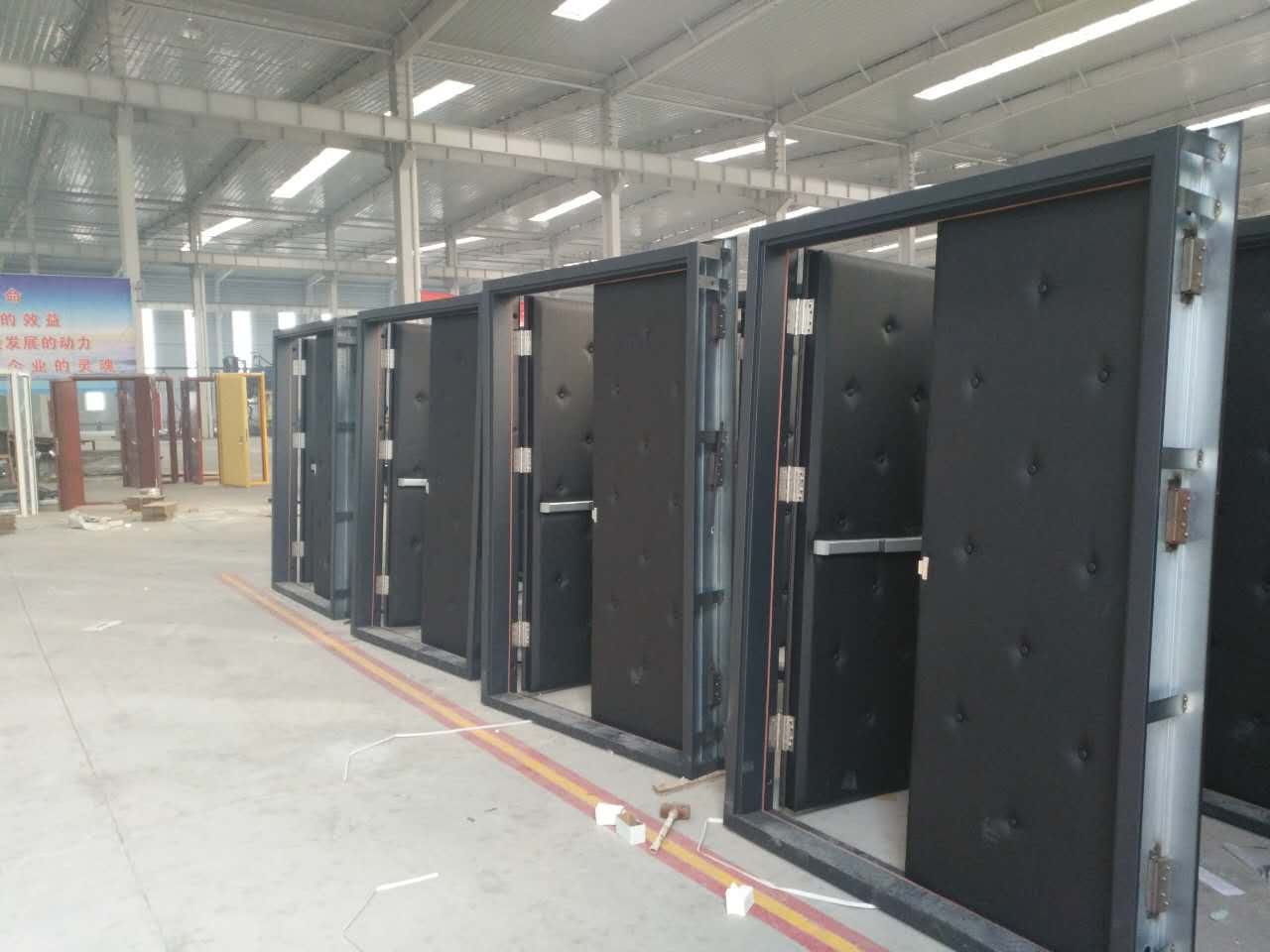 名称:防火隔音门 材质说明: 门框选用1.5mm钢板,门框厚度100mm 门扇选用1.0mm钢板,门扇厚度50mm 门扇内部填充防火珍珠岩板 锁具选用标配防火锁、合页 防火隔音门选装大拉手、逃生推杠锁 防火隔音门选用防火胶条及密封隔音条 门框门扇颜色为粉末静电喷涂