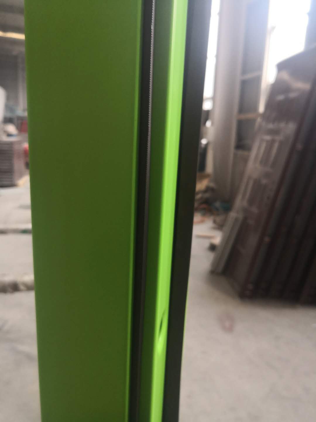 名称:防火隔音门 材质说明: 门框选用1.5mm钢板,门框厚度100mm 门扇选用1.0mm钢板,门扇厚度50mm 门扇内部填充防火珍珠岩板 锁具选用标配防火锁、合页 防火隔音门选装大拉手、逃生推杠锁 防火隔音门选用防火胶条及密封隔音条 门框门扇颜色为粉末静电喷涂