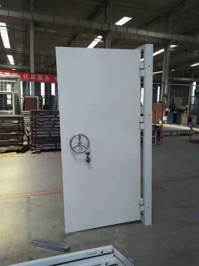 名称:钢质防(抗)爆门 材质说明: 门框选用100mm*50mm*3.0优质方管 门扇选用里外3.0mm优质钢板,门扇厚度76mm 门扇内部填充防爆骨架及硅酸铝 门扇与门框选用防爆承重门轴 锁具选用防爆手轮锁加机械锁、逃生推杠锁 门扇选配加装防爆视窗 门框门扇颜色为粉末静电喷涂