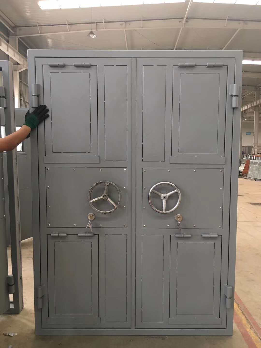 名称:钢质泄(压)爆门 材质说明: 门框选用100mm*50mm*3.0优质方管 门扇选用里外1.2mm优质钢板,门扇厚度74mm 门扇内部填充防爆骨架及硅酸铝 门扇与门框选用防爆承重门轴 门扇选用泄爆小扇 锁具选用防爆手轮锁加机械锁 门框门扇颜色为粉末静电喷涂