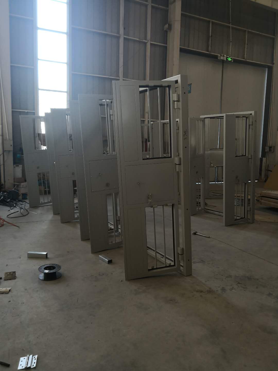 名称:钢质泄(压)爆门 材质说明: 门框选用100mm*50mm*3.0优质方管 门扇选用里外1.2mm优质钢板,门扇厚度74mm 门扇内部填充防爆骨架及硅酸铝 门扇与门框选用防爆承重门轴 门扇选用泄爆小扇 锁具选用防爆手轮锁加机械锁 门框门扇颜色为粉末静电喷涂